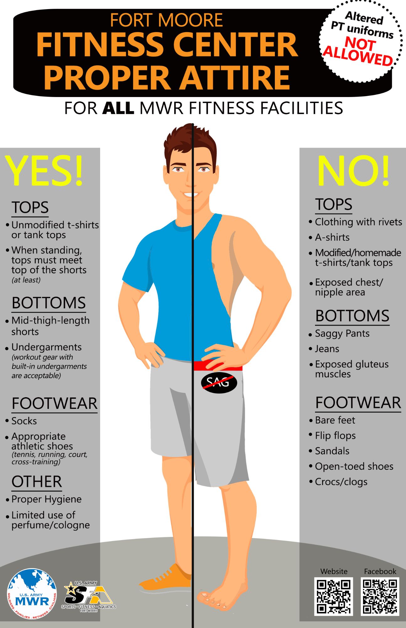- Proper Fitness Attire/Dress Code in all MWR Fitness Centers
