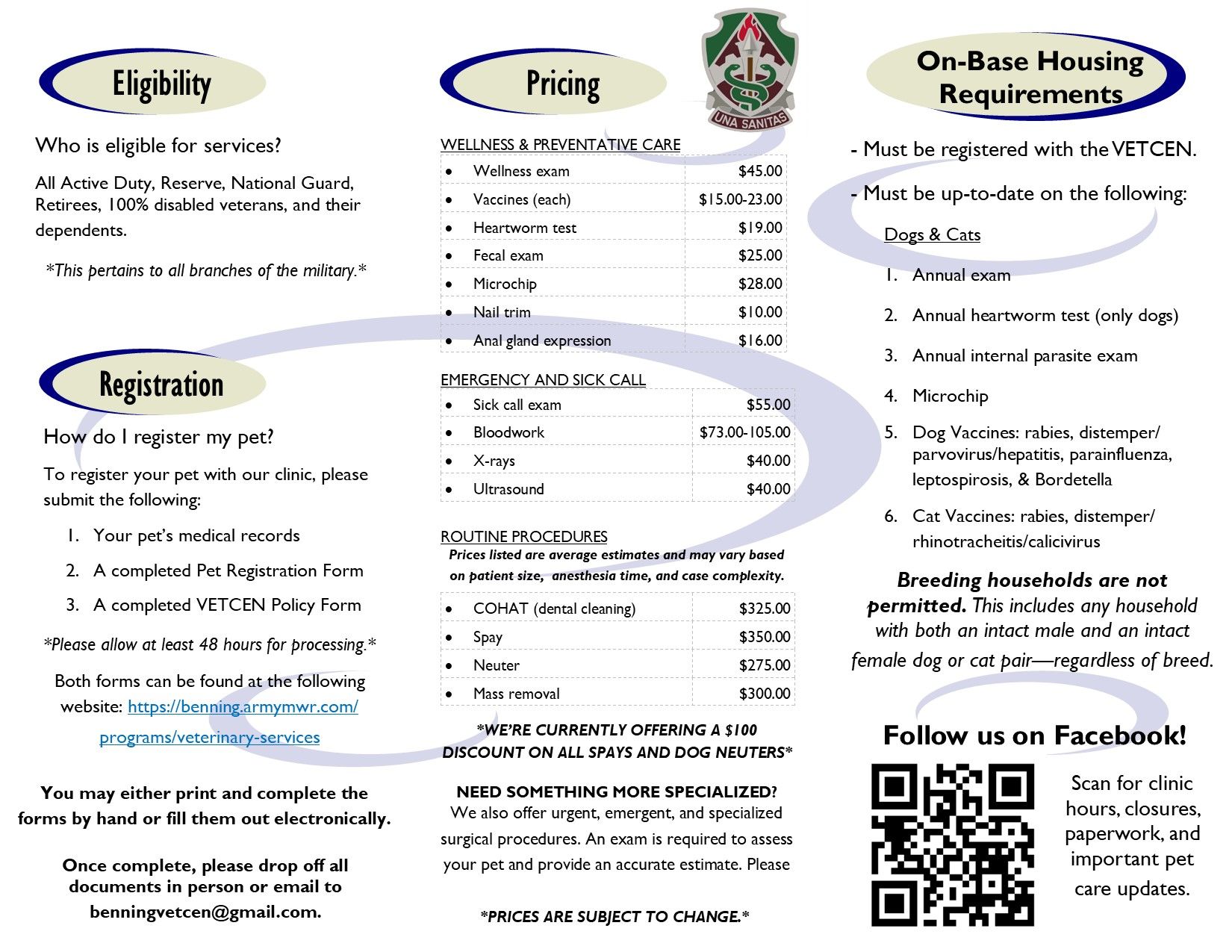 The following are required for pets that live on post. Prices are included but subject to change. A $2 service fee is applied to all transactions.